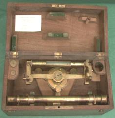 0,23 x 0,14 h : 0,17, lunette 310 mm objectif diamètre 22 mm, nivelle 172 mm, 3 vis calantes diamètre 0,15, cercle non gradué diamètre 75 mm, pince de blocage sans fin pointé 77 pièces nettoyé le 04/11/2009 |