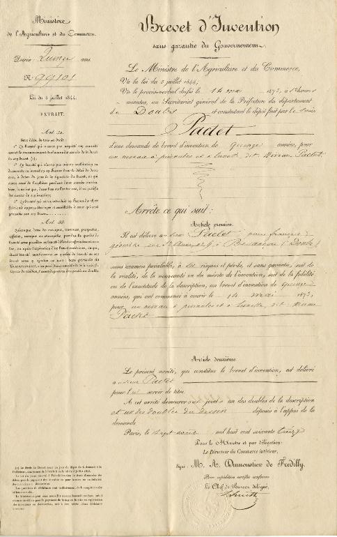LES INVENTIONS DE Pierre François PACTET 9 rue Ste Anne à Besançon (Doubs) Géomètre de la Compagnie des Chemins de Fer de Paris à Lyon et à la Méditerranée |