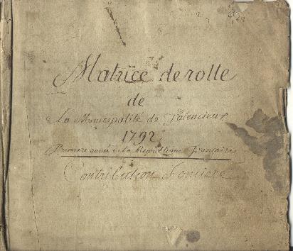 Matrice de rolle de la Municipalité de Talencieux 1792 Contribution Foncière don de Bernard Devise.
